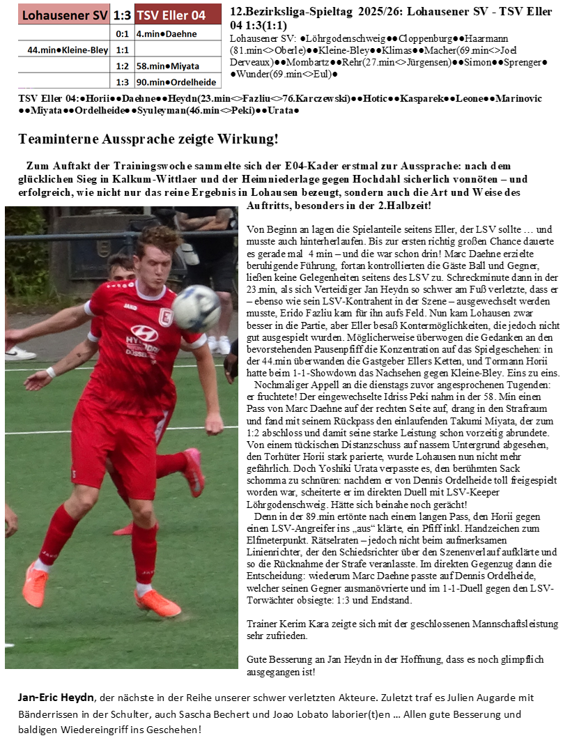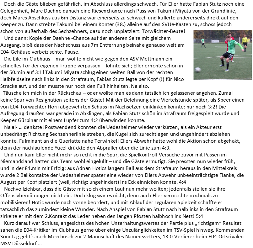 Korrektur: kommenden Freitag, 20:00 Uhr ... Die Turn- und Sportvereinigung Eller 04 ist ein im Süden der nordrhein-westfälischen Landeshauptstadt Düsseldorf ansässiger Sportverein mit den Abteilungen Fußball, Handball, Turnen und Freizeitsport/Boule...